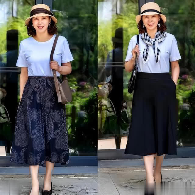 相比于短裙,长至膝盖以下、足踝以上的半身裙更能展现得体与大方的气质,不会给人带来穿衣的违和感。